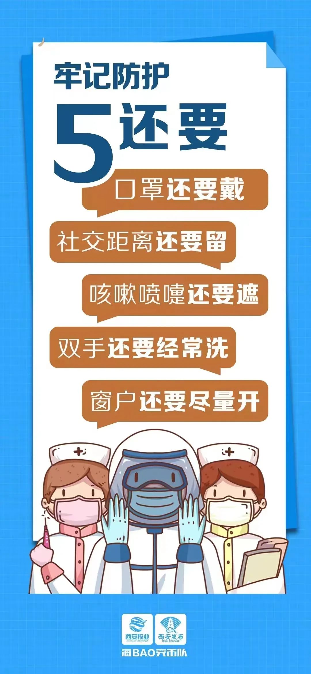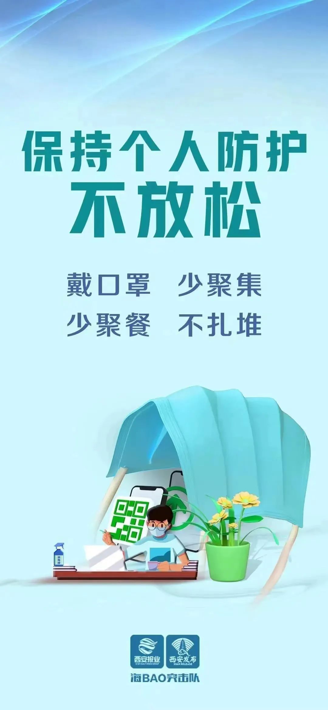 当前疫情形势严峻复杂,提倡广大群众牢固树立“每个人是自己健康的第一责任人”的理念,对自己健康负责,疫情期间从严做好个人防护和健康监测,戴口罩、勤洗手、常通风、少聚集,若有发热、咳嗽等不适症状,请及时到就近医院发热门诊就医。积极接种新冠疫苗,防感染、防重症。严格遵守疫情防控法律法规、政策规定,积极配合落实疫情防控步伐。