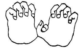 其实历史上,曾经还出现过另外三种手势。第一种是自1975年起,我国跳水运动员开始练习“压水花”技术时接纳的手势:两手相距约10cm,手掌上翻,五指伸直张开,掌心对水。